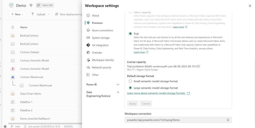 Open the settings of your newly created Semantic Model: