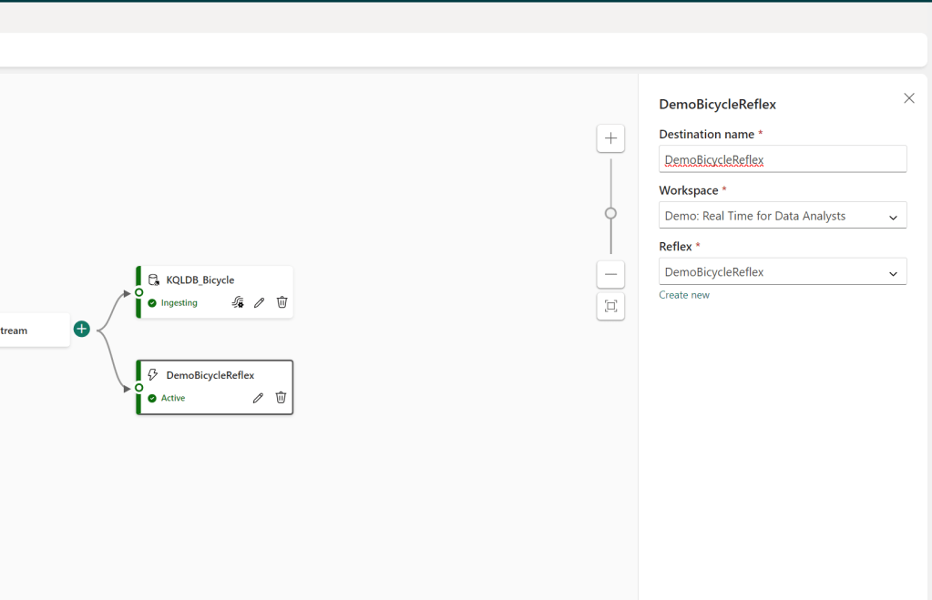 And also I created an output to a Data Activator reflex. For direct output to Data Activator, you do however not have the possibility of doing event processing: