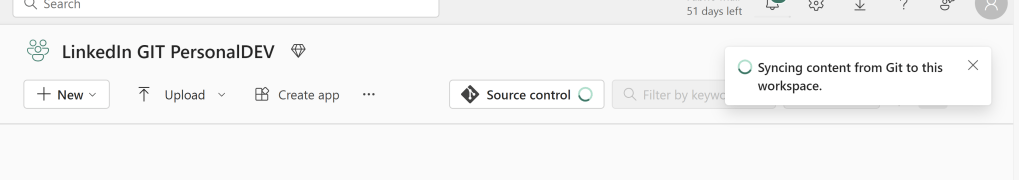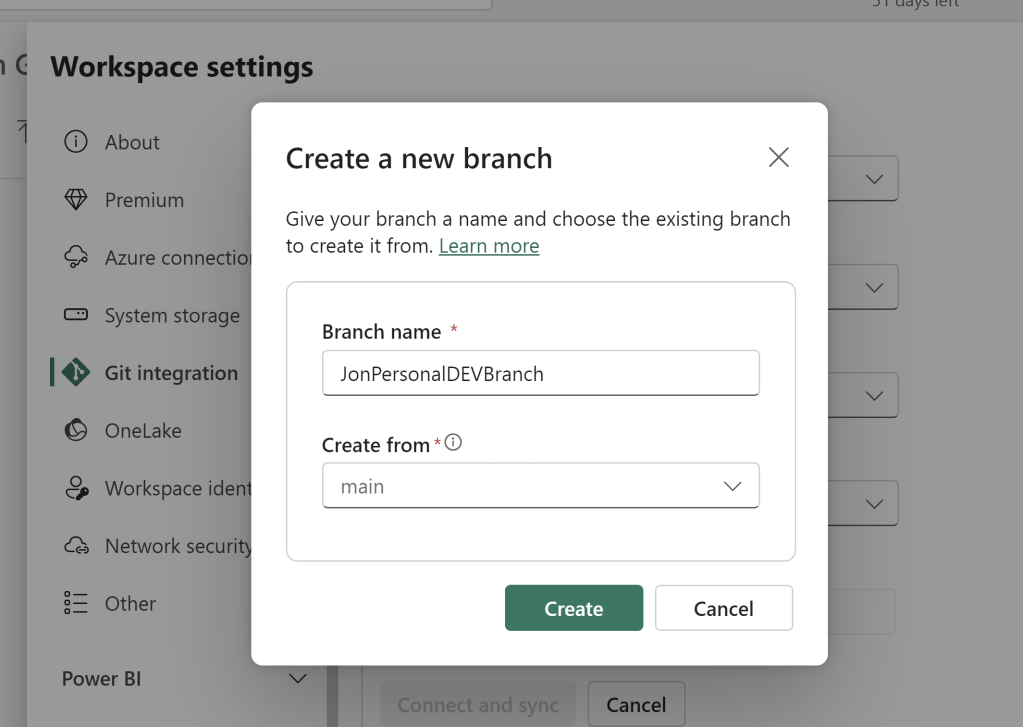 This will sync the items from the main branch into this new Personal DEV Workspace: