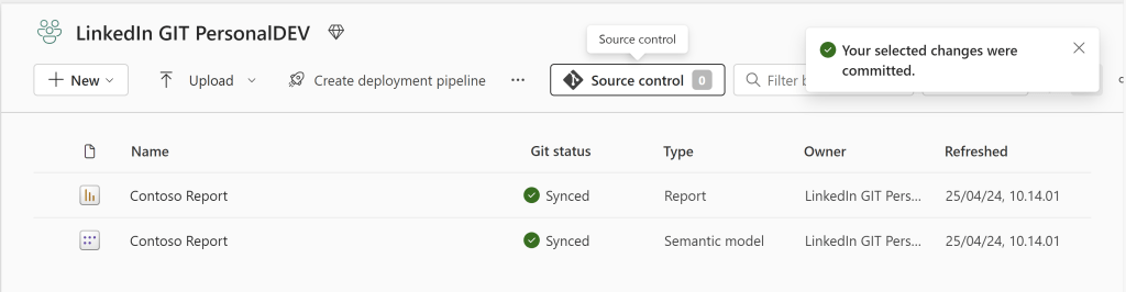Awesome! The new changes can now be synced to the Shared DEV Workspace, and is ready to be tested: