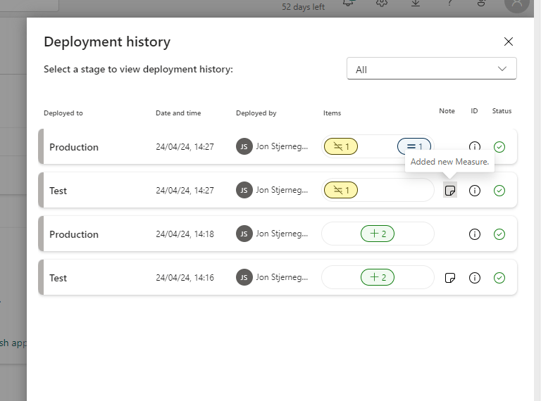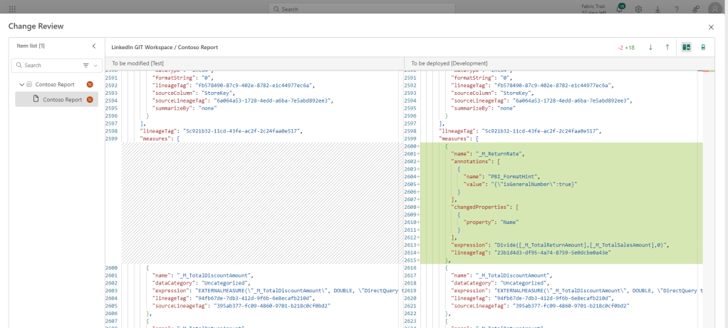 And the Deployment Pipeline will now recognize a difference between the DEV and TEST workspaces, and also allows us to view details about the difference, letting us verify the changes before deploying through the stages. :