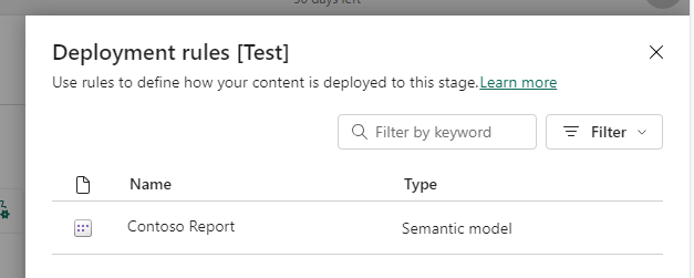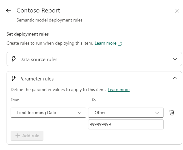 You setup the rules by first selecting an eligible item (not all Fabric / Power BI Items support deployment rules. See the list here: Create deployment rules for Fabric’s Application lifecycle management (ALM) – Microsoft Fabric | Microsoft Learn