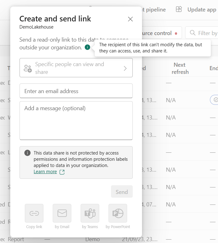 Microsoft calls this functionality as creating an ‘external data share’, and works by creating a shortcut to your OneLake data in the recipient’s tenant. No data is being copied as you know it from any other Fabric/OneLake shortcut, and data is shared ‘in-place’ as a read-only copy.