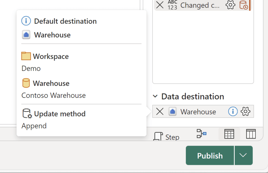 If you wish to add a Default Destination to your Dataflow, all you need to do is to create the Dataflow from inside your desired destination. This works for both Warehouses, Lakehouses and KQL Databases: