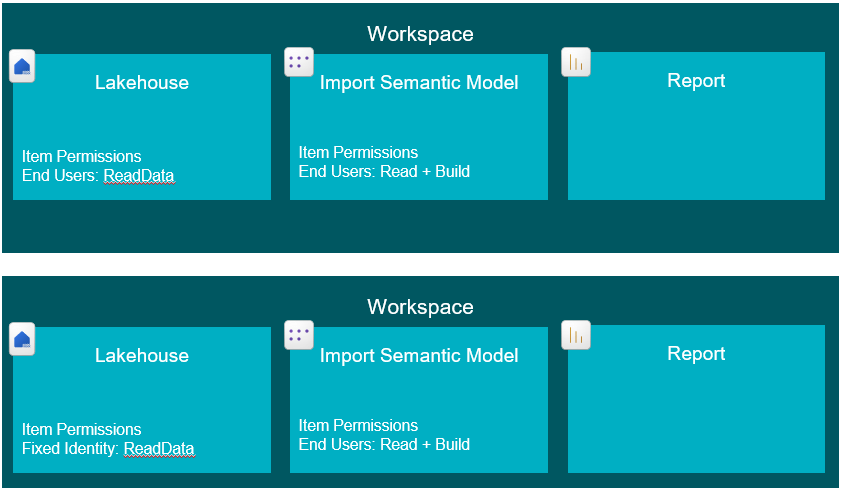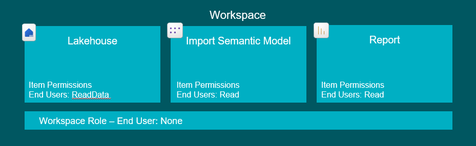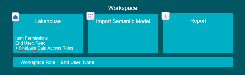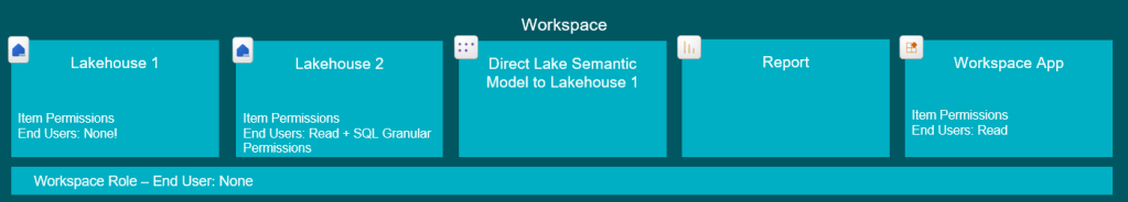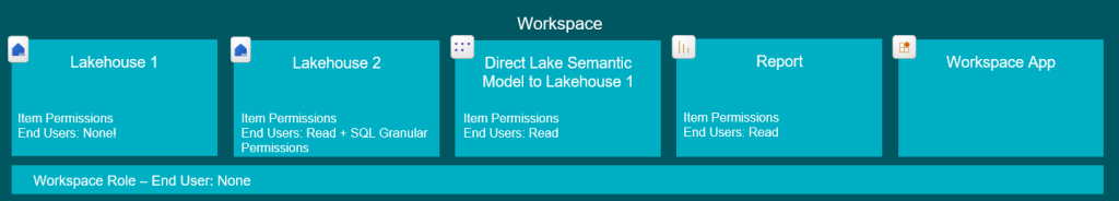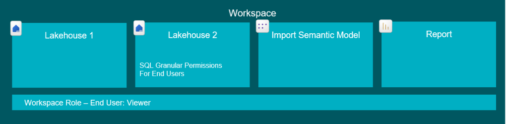 End Users Option 2: Workspace App access OR Read Access to the Report and Semantic Model Items connected to Lakehouse 1 AND Read Access to Lakehouse 2 AND SQL Granular Permissions on Lakehouse 2