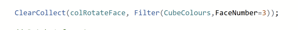 To do this, I used Sequence and RandBetween, as well as a manual mapping of the values from 1-18 into Rubik’s Cube Letter movement counterparts, to first create a Collection of 25 moves to be performed.