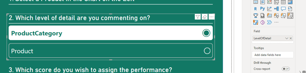 In order for us to add this feature to the report, I’d like the users to be able to choose between ProductCategory and Product, whenever they add a comment.