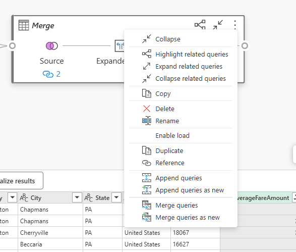You may know choose from the available transformation, to remove columns, filter rows, merge tables and more. Note however that not all of your usual Power Query transformations are available, and hence not all cases may be solved this way.